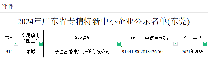 近日,东莞市工业和信息化局发布了《关于2024年专精特新中小企业认定和2021年专精特新中小企业复核情况的公示》,米兰milan高能顺利通过广东省专精特新中小企业复核。